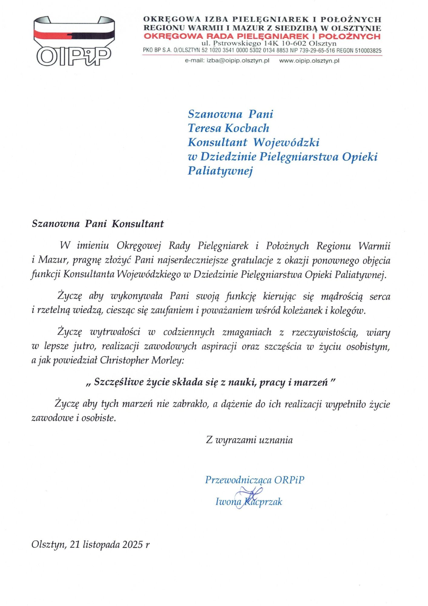 Przewodnicząca Okręgowej Rady Pielęgniarek i Pielęgniarek i Położnych w Olsztynie